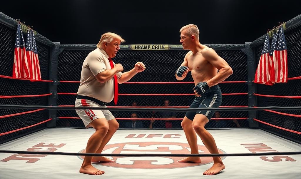 Trump facing off with Jerome Powell in the octagon of UFC. The real fight will commence (again) on Friday the 22nd at 10 am Eastern time when Powell does his news conference from Jackson Hole Wyoming. The Stock Talk at Studio 59 livestream starts at 1pm E…